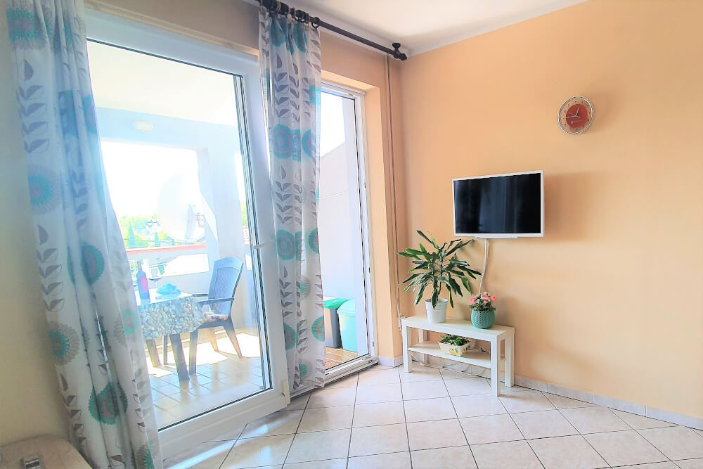a/c, TV, refrigerator, stove, cutlery, utensils, pots, plates, bowls, glasses